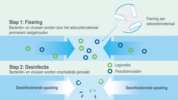 Zařízení safeliQ odstraňuje pomocí adsorpční technologie bakterie a choroboplodné zárodky, jako je legionella, E-coli a pseudomonády. SafeliQ se každý den desinfikuje prostřednictvím desinfekčního zpětného proplachu. Díky tomu je vaše pitná voda každý den zbavena bakterií a virů a zařízení safeliQ efektivně přispívá ke kvalitě vašeho života.