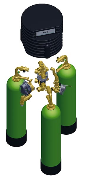 Zařízení Delta-P je určeno pro použití u větších zákazníků a jde o nejúspornější zařízení na změkčení vody na trhu. Jde o zařízení, které se skládá ze 3 lahví, přičemž 2 jsou vždy v podniku a 1 je ve stavu stand-by nebo regeneruje. Tím je zajištěn kontinuální průtok vody. Maximální ztráta tlaku u zařízení na změkčení vody je 0,8 baru a zařízení lze velmi snadno instalovat prostřednictvím instalačního módu na PLC (plug-and-play)!